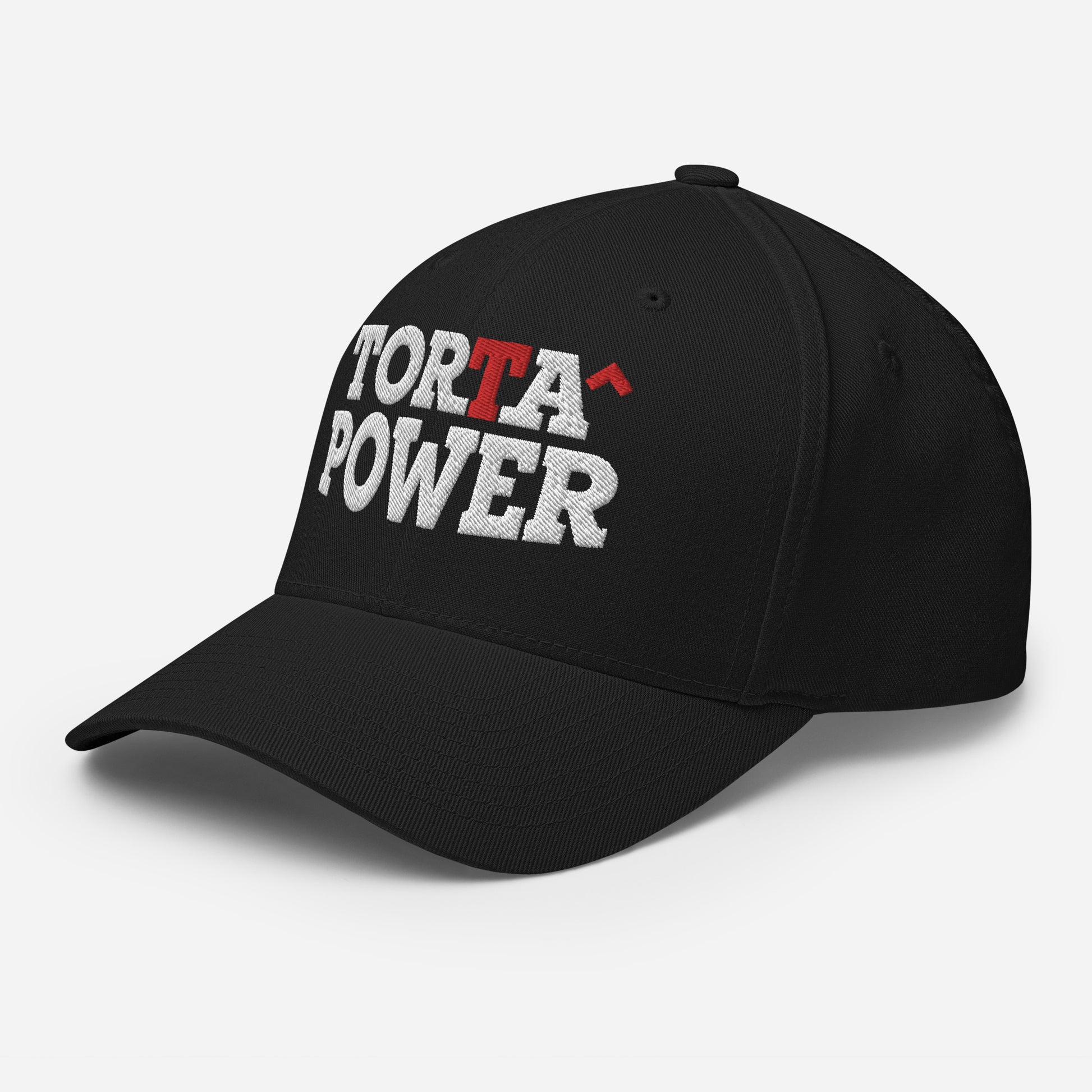Introducing the Official Torta Power Brand Hat by FlexFit, embroidered with the iconic "Torta Power" logo. Designed for ultimate comfort, this hat is available in two sizes with an elastic stretch band, making it a perfect fit for any head shape. Its athletic design, complete with a curved visor, ensures both style and functionality.